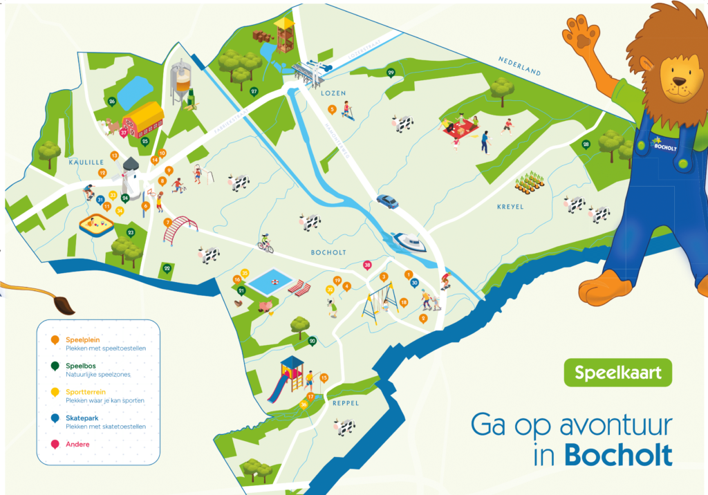 Klik hier voor een speelkaart met daarop alle speelterreinen en -bossen in Bocholt.
